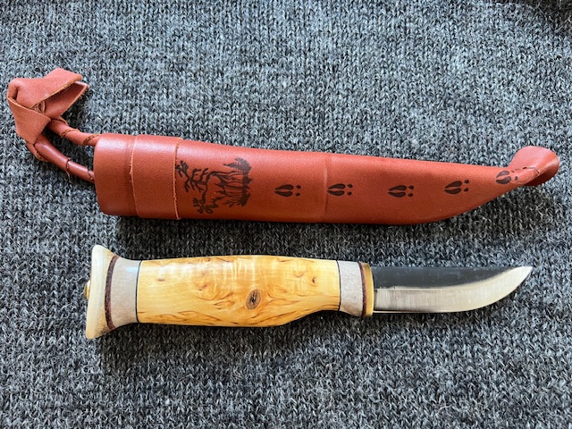 Bladet är i kolstål 7.5cm och hela kniven är 24cm